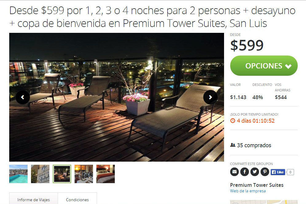 En Mayo de 2015 está vigente el siguiente Groupon: