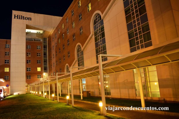Para realizar la reserva del hotel, consulté varios sitios web, en primer lugar la página oficial de la cadena Hilton, intentando obtener algún beneficio como miembro Hhonors (la suscripción es gratis) pero la tarifa era más cara comparándola con otros sitios web que consulto usualmente (Avantrip era la más cara lejos (superando a la web oficial), luego seguía Despegar y empataban Almundo con Booking). Me decidí por Almundo, pues podía pagar y pesificar en el momento, financiarlo en hasta 18 cuotas fijas sin interés y sumar puntos en Club Almundo, el programa de fidelización, que además de otorgar algunos descuentos, dichos puntos se pueden canjear por más noches de Hotel. La habitación doble standard con desayuno buffet tenía un precio de € 170, en 2015 $2200 con el 35% incluido. Parece mucho y lo es, pero descontando el traslado a la ciudad la tarifa duele menos, y por la comodidad valía el sacrificio.