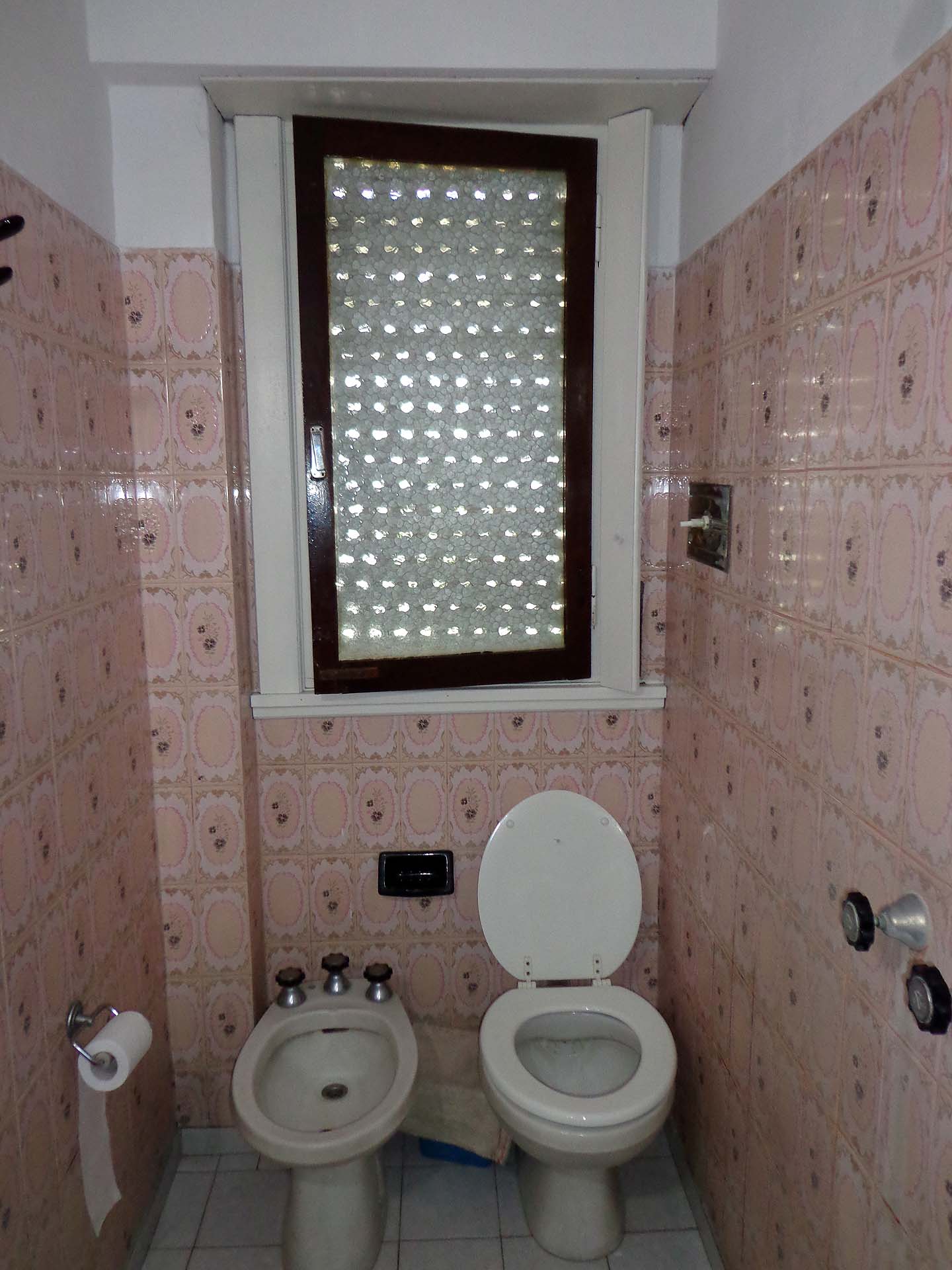 El baño teniendo en cuenta los azulejos, tiene 40 años sin restauración, los sanitarios con sarro. Sólo un toma corriente en la habitación, y el del baño muy lejos del lavatorio.