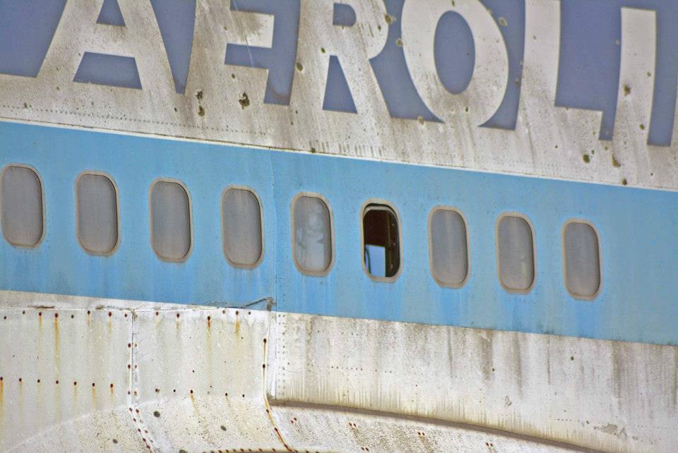 En la quinta ventanilla, pareciera haber un rostro asomándose. Será el fantasma de la azafata?