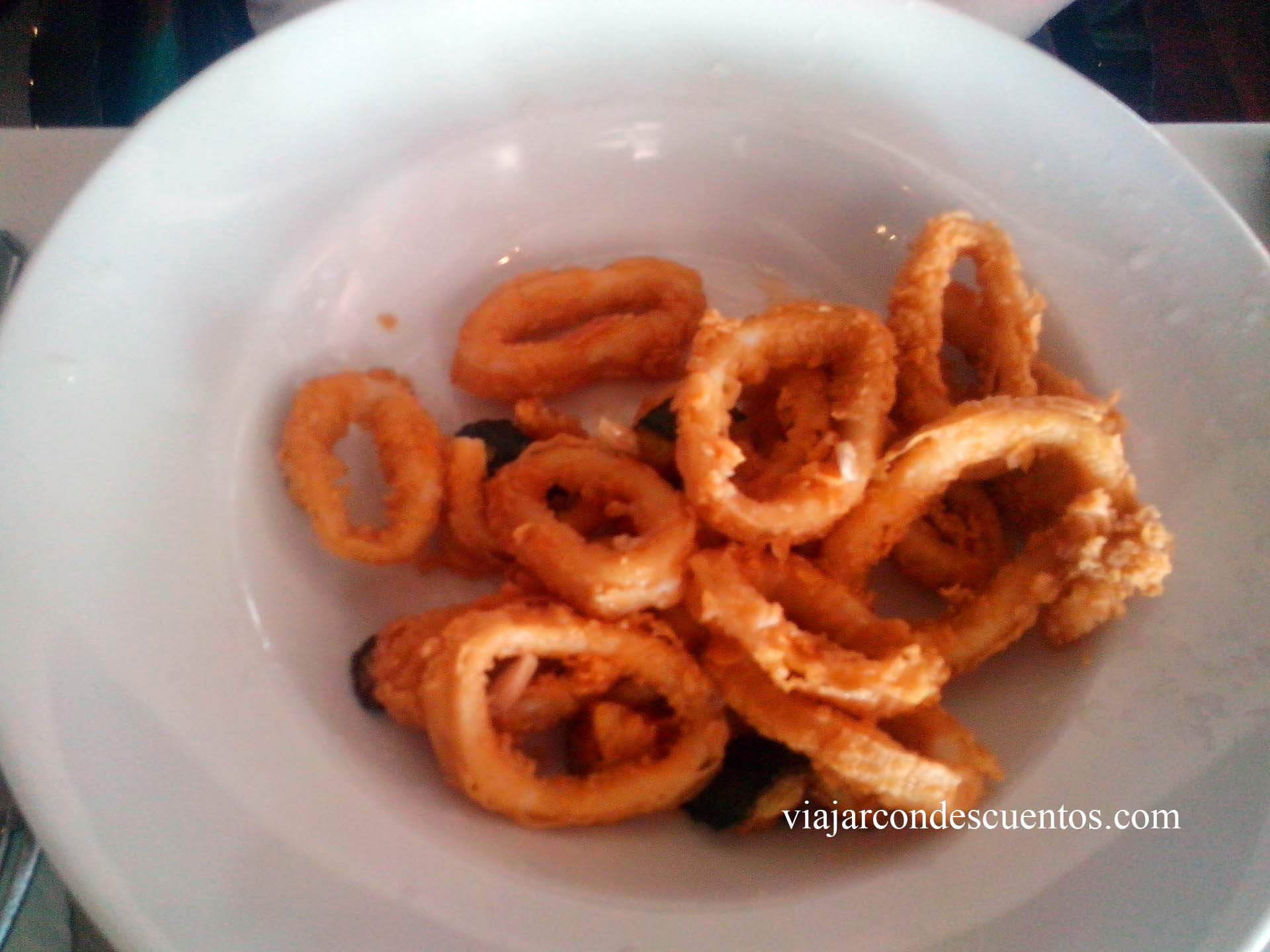 De entrada pedimos rabas y Muzzarella en carroza (muzzarella rebozada sobre un colchón de salsa fileto).