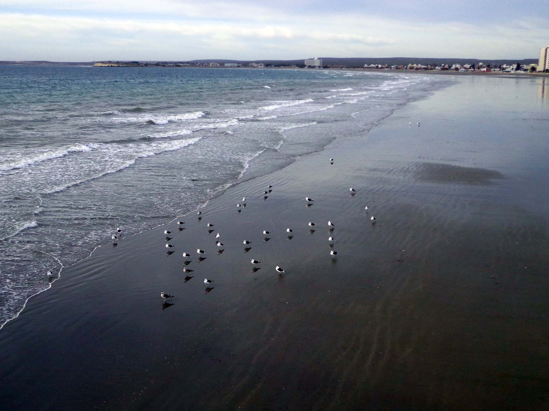 El primer día en Puerto Madryn estaríamos sin auto hasta las 18.00hs, momento en que pasaríamos por Alamo Argentina (rent a car) a retirarlo. Por lo tanto, aprovechamos para recorrer la ciudad caminando. Comenzamos con una visita a la playa frente al hotel, donde realizamos algunas tomas fotográficas con vistas al muelle, y al hotel Rayentray.