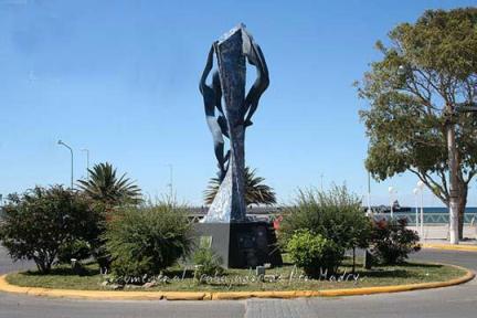y justo frente a la plazoleta donde se encuentra el monumento al Trabajador de Madryn, tiene su ingreso el muelle Comandante Luis Piedrabuena.