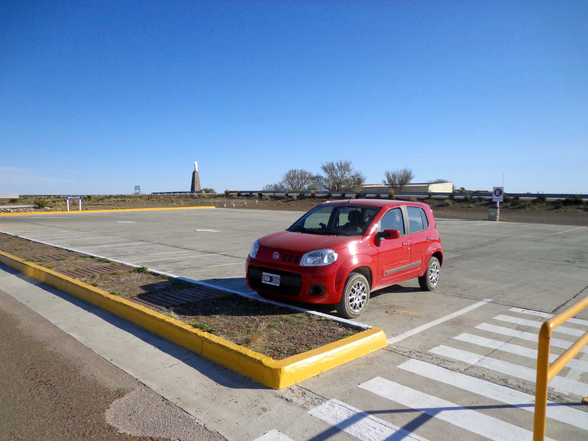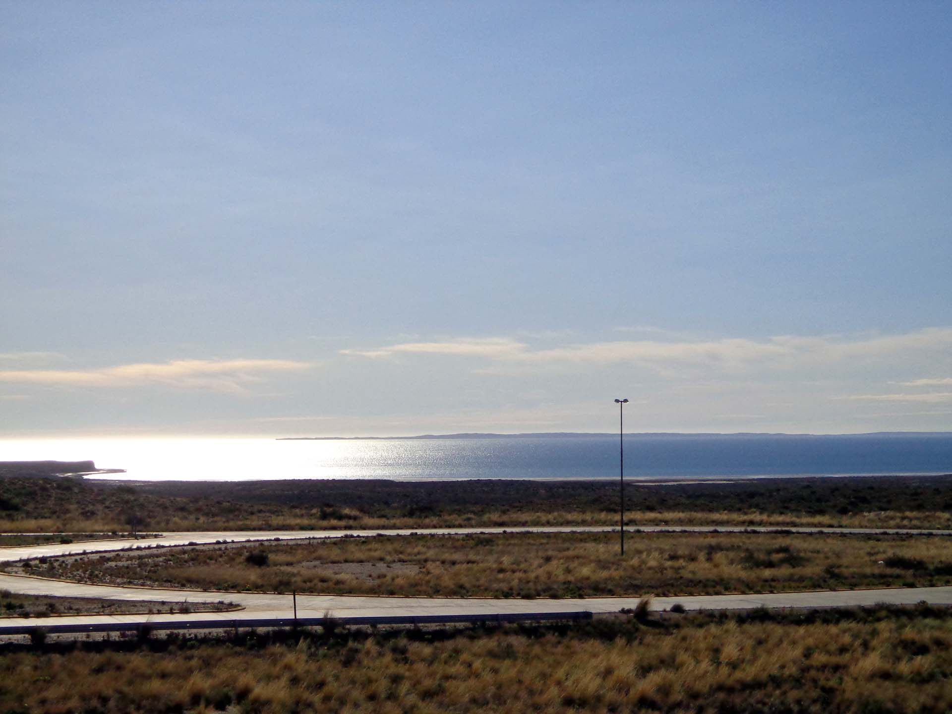El día nos recibió con un hermoso amanecer. Tras el desayuno, partiríamos desde Puerto Madryn, en auto alquilado (Alamo Argentina), rumbo a Península de Valdés. Nos informaron que algunas ballenas habían llegado al Golfo Nuevo (29 de Mayo); con un poco de suerte las veríamos. Amanecer en Madryn Aproximadamente a las 10.00hs ya estábamos en la ruta. Decidimos ir por el camino costero, ruta provincial N° 42, quizás podríamos hacer algún avistaje al pasar por las Playas el Doradillo y Las Canteras; y sí… a lo lejos vimos algún que otro salto de las ballenas (pero de forma muy esporádica).