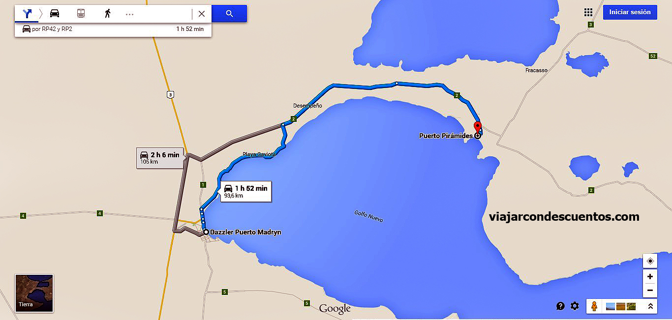 El camino realizado fue el siguiente: mapa dazzler puerto Pirámides